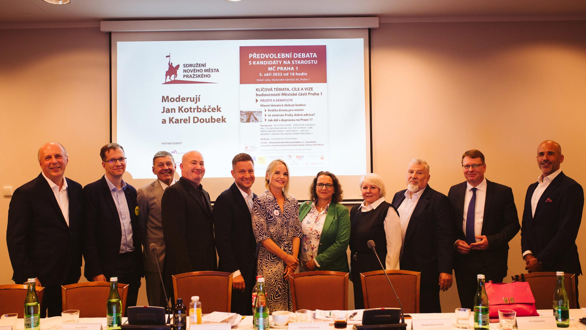 Ikonické prostředí sálu Mucha v hotelu Jalta se opět po čtyřech letech stalo dějištěm tradiční předvolební debaty, pořádané Sdružením Nového Města pražského, koordinátorem pro správu veřejného prostoru Václavského náměstí. A jako obvykle přilákala pozornost široké veřejnosti. Dle odhadu organizátorů se na místo dostavilo přes 130 diváků, kteří si v příjemné atmosféře vyslechli kultivovanou diskuzi zástupců devíti politických subjektů, které budou v Praze 1 usilovat o hlasy voličů. Zásluhu na tom bezesporu měli i moderátoři Jan Kotrbáček a Karel Doubek, kteří se svých rolí zhostili na výbornou.