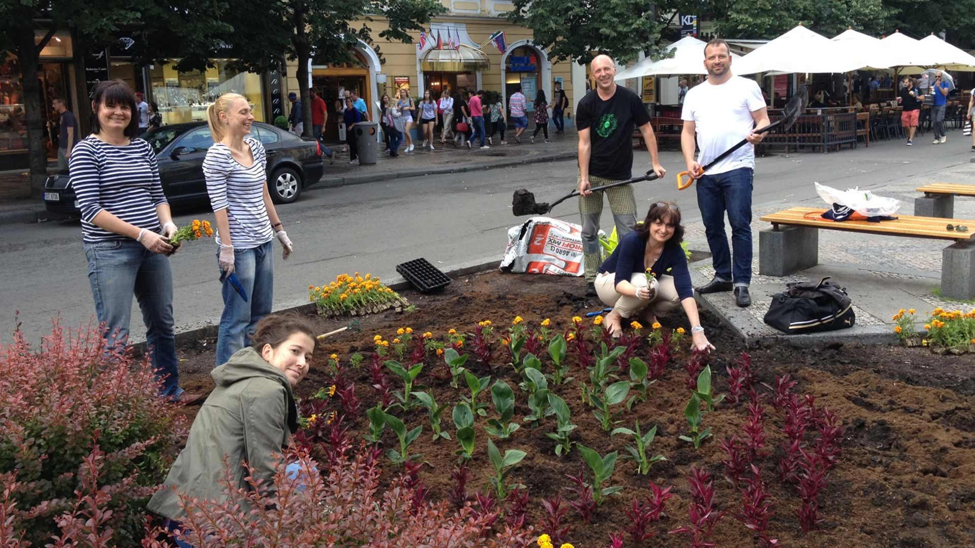Sázení květin na Václavské náměstí